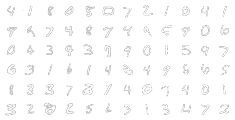 with torch.no_grad(): model.eval() eval_shape = (2*36,) + lat_val.shape[1:] N = torch.randn(eval_shape, device=device) pred = do_diffusion_backward(model, N, time_steps) decoder.eval() pred = decoder(pred).cpu().numpy()
